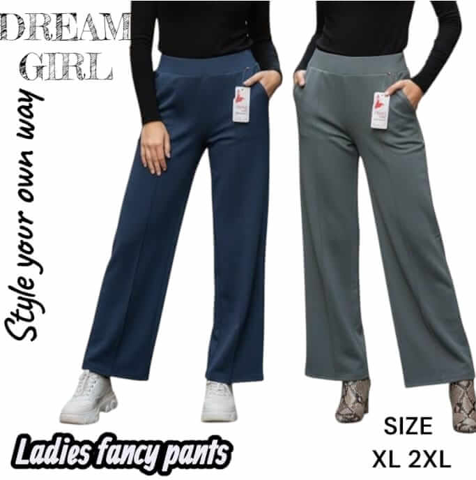 Elevate your everyday wardrobe with our Dream Girl Signature Ladies Fancy Trousers. Designed for the modern woman who balances style and comfort, these wide-leg pants offer a sophisticated, structured look without the restriction of traditional tailoring. The clean, vertical front seam detail elongates the leg, providing a professional silhouette that transitions seamlessly from the boardroom to a weekend social.