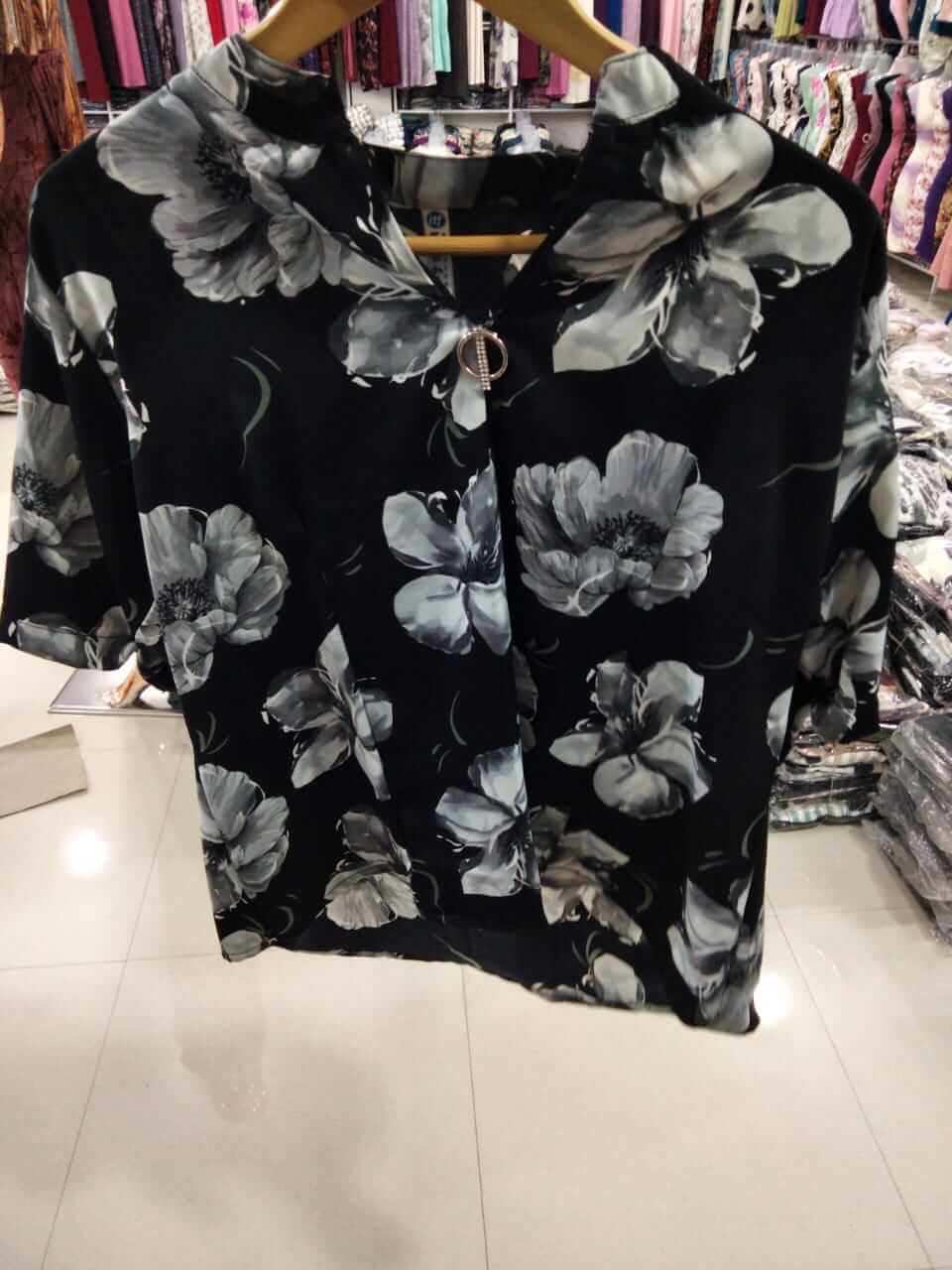 Be the first to review “Midnight Bloom Ring-Accent Top in Black and Silver Floral”