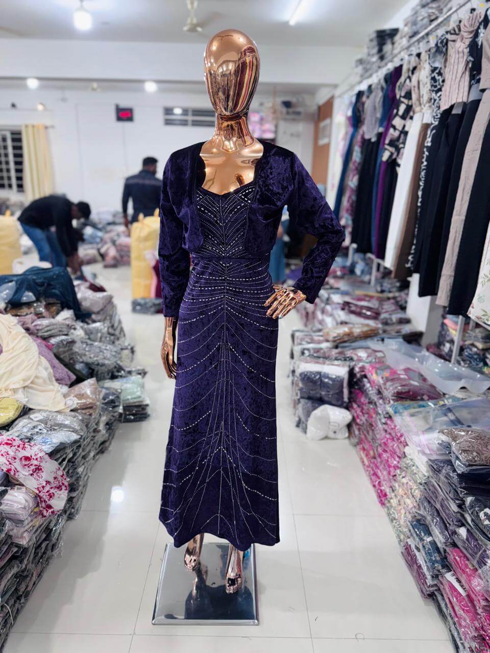 Command the room in our Midnight Majesty Velvet Two-Piece Set, a pinnacle of evening glamour designed for the modern woman who loves timeless luxury. This ensemble is crafted from premium, high-luster crushed velvet in a deep, regal purple that shifts beautifully under evening lights.
