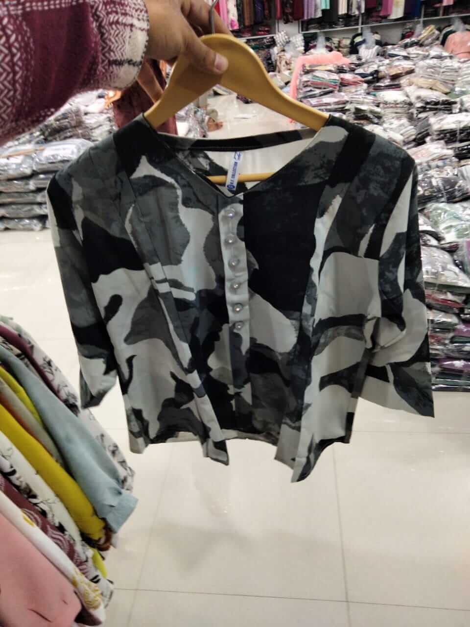 Elevate your everyday rotation with the Midnight Slate Abstract Top. This piece features a striking monochromatic palette of charcoal, light grey, and ivory, blended into a bold, abstract camouflage-inspired pattern. The artistic, high-contrast design offers a modern edge that stands out in any setting, from the office to an evening social.